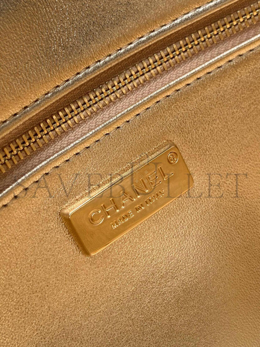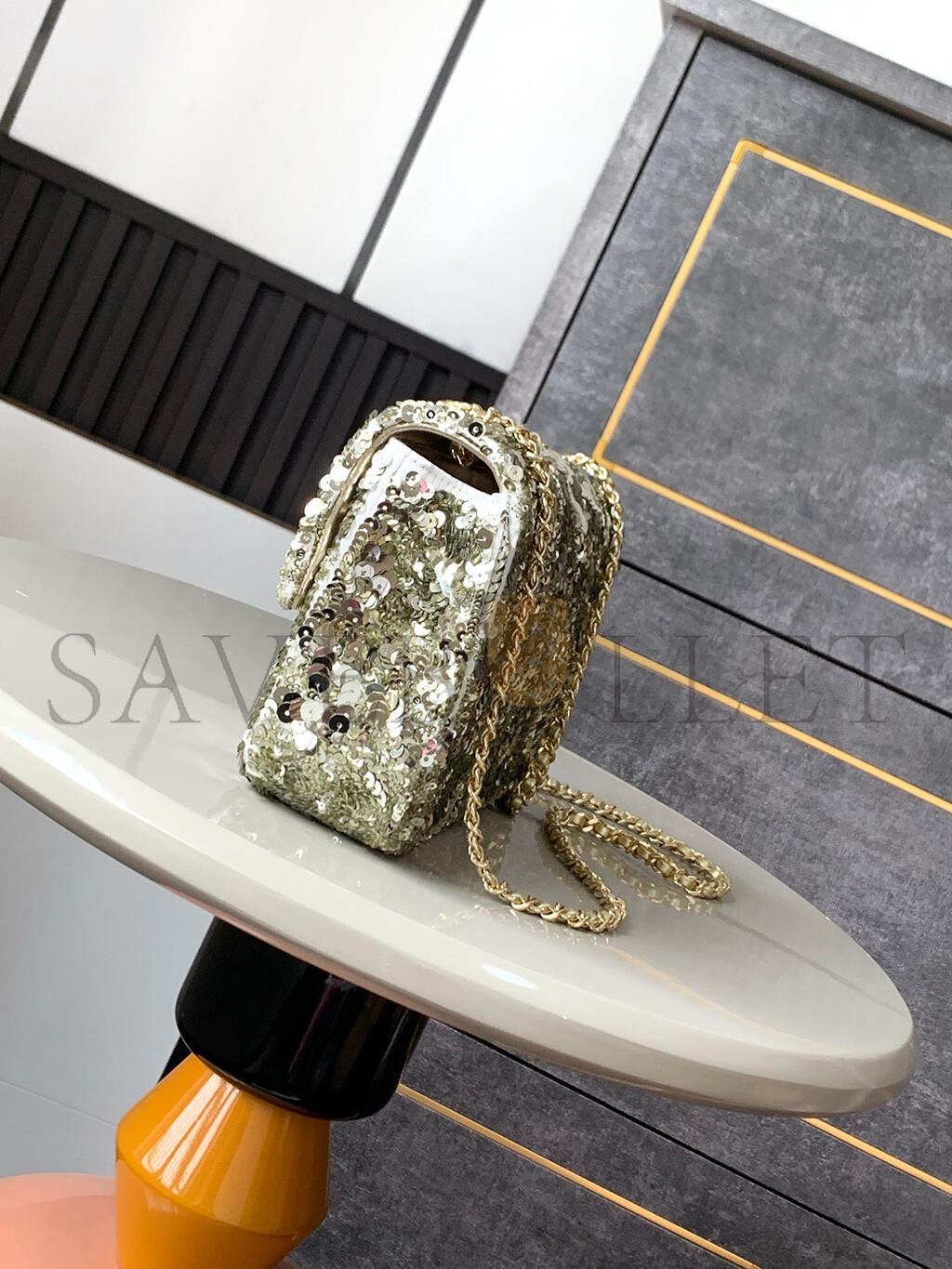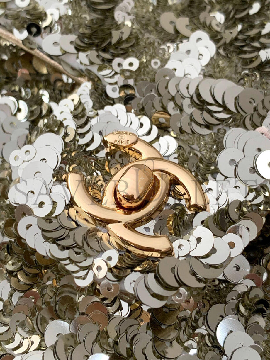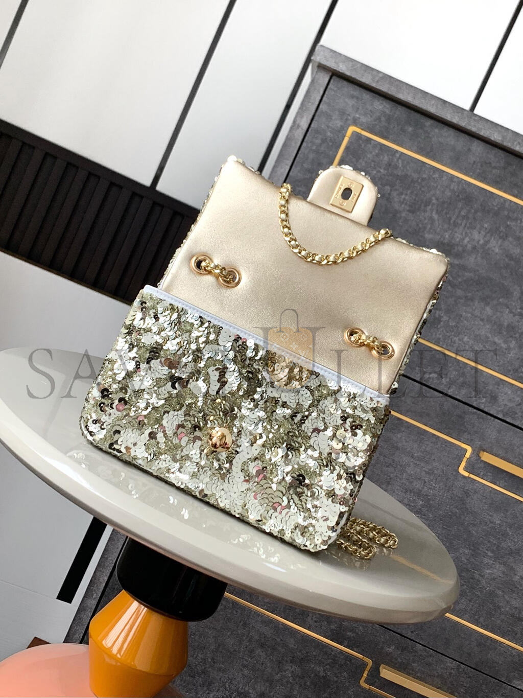 CHANEL FLAP BAG SEQUINS & GOLD-TONE METAL GOLDEN AS4561 (21*14*8cm)