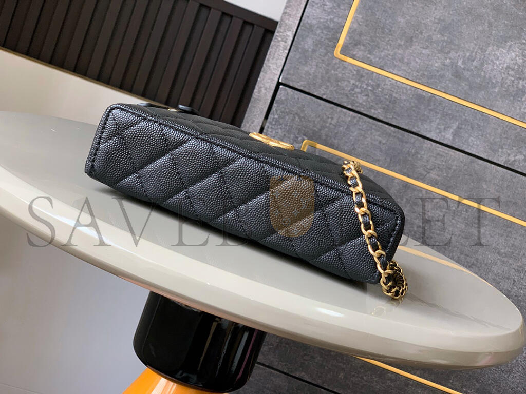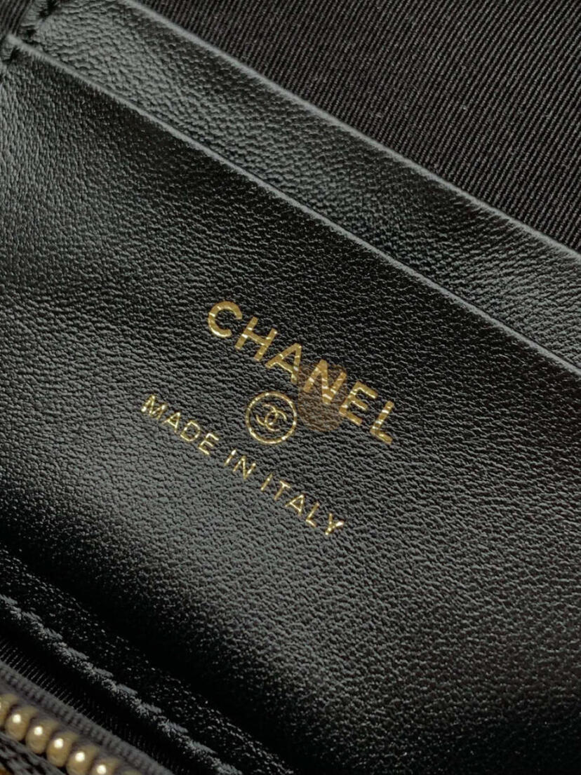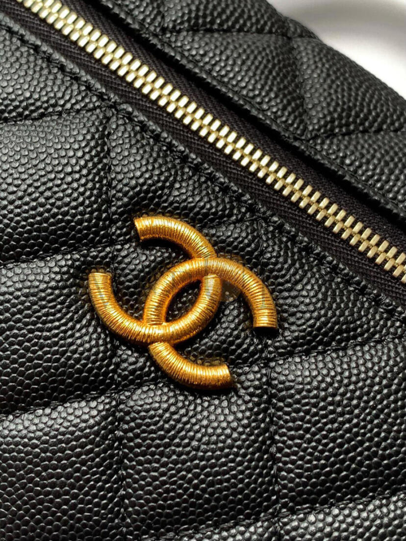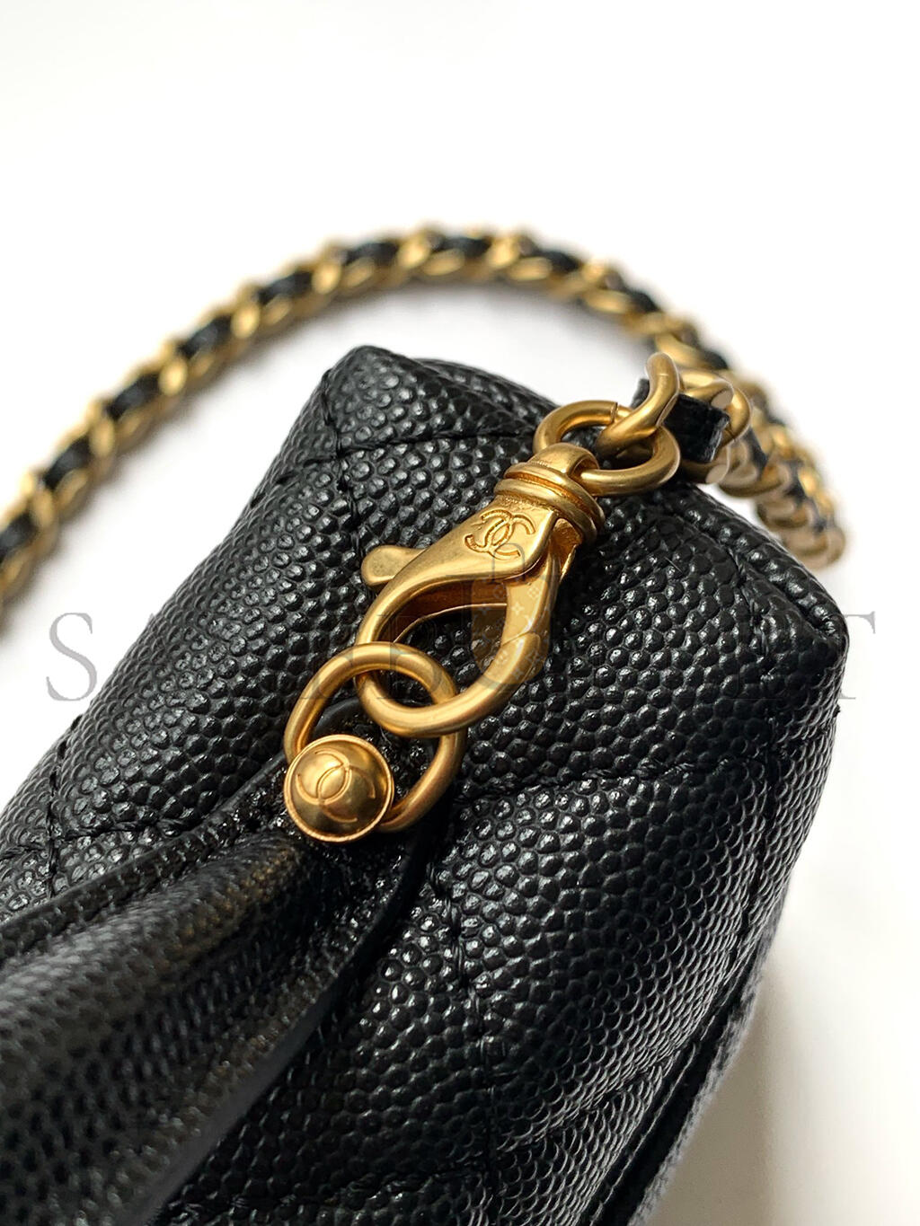 CHANEL CC TOP HANDLE LONG VANITY CASE WITH CHAIN SHINY CAVIAR LIGHT GOLD HARDWARE BLACK AP4385 (19.5*17*5cm)
