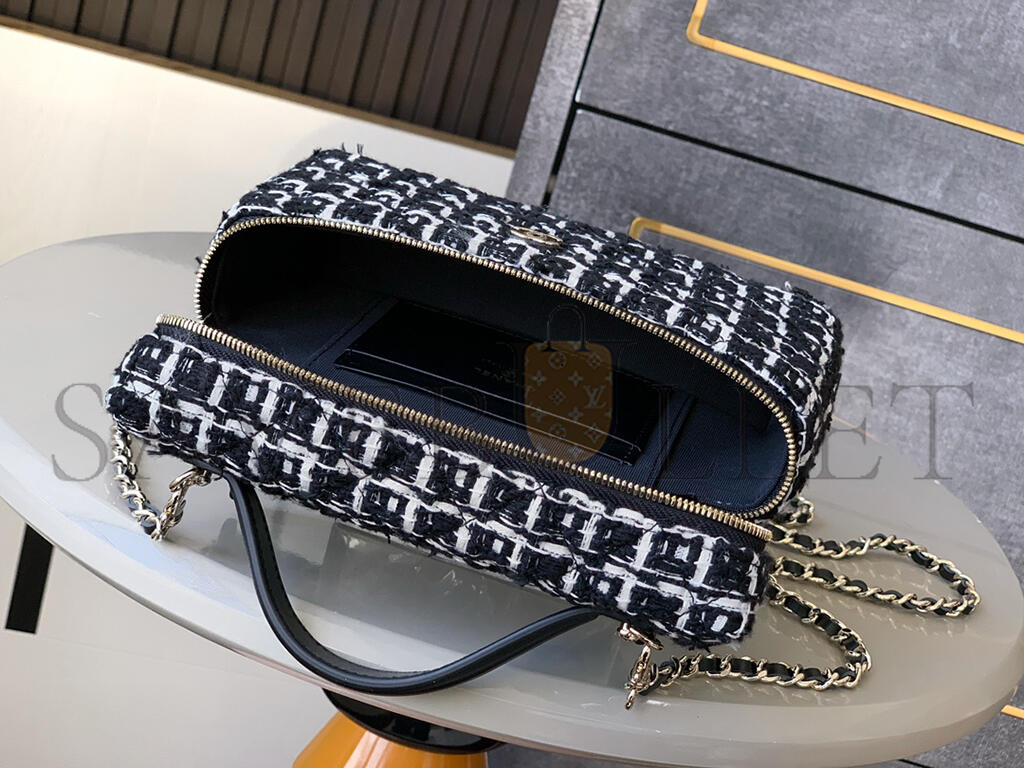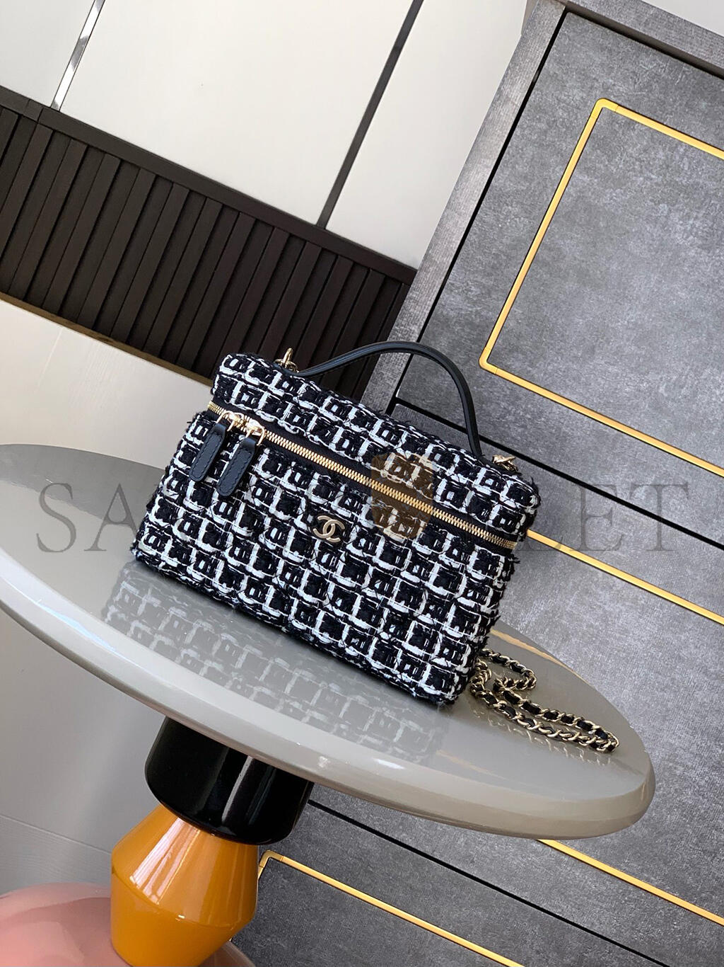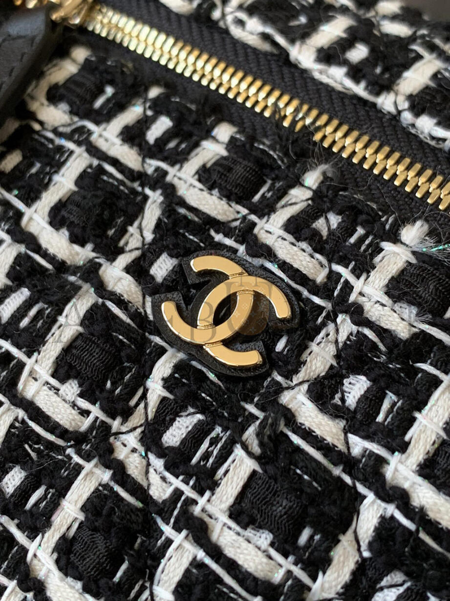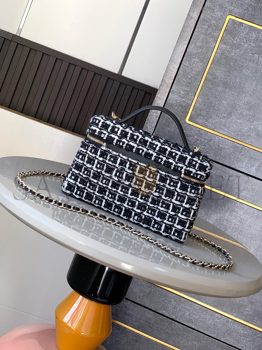 CHANEL TWEED QUILTED TOP HANDLE SLIM LONG VANITY BLACK ECRU WHITE AP4385 (19.5*17*5cm)