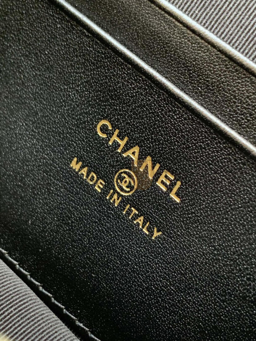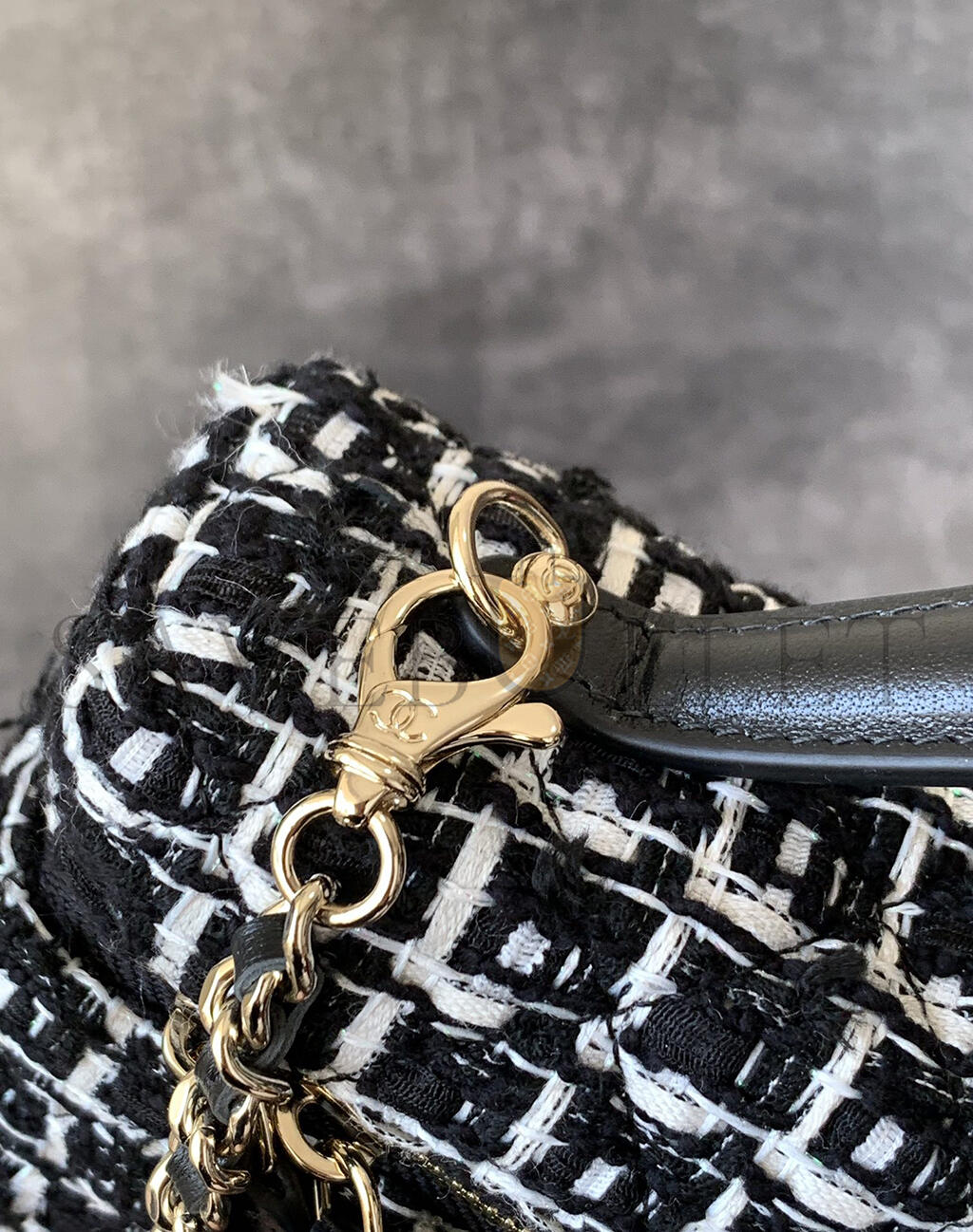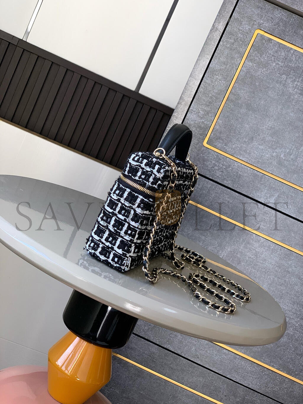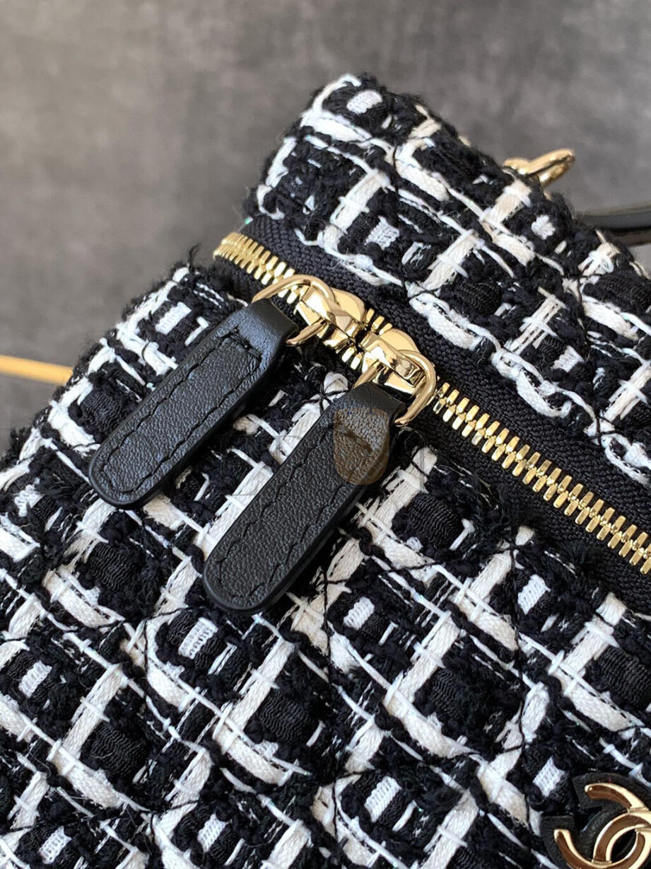 CHANEL TWEED QUILTED TOP HANDLE SLIM LONG VANITY BLACK ECRU WHITE AP4385 (19.5*17*5cm)