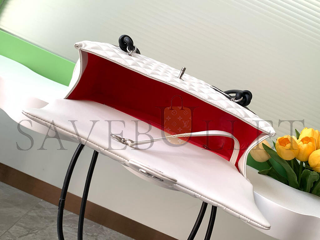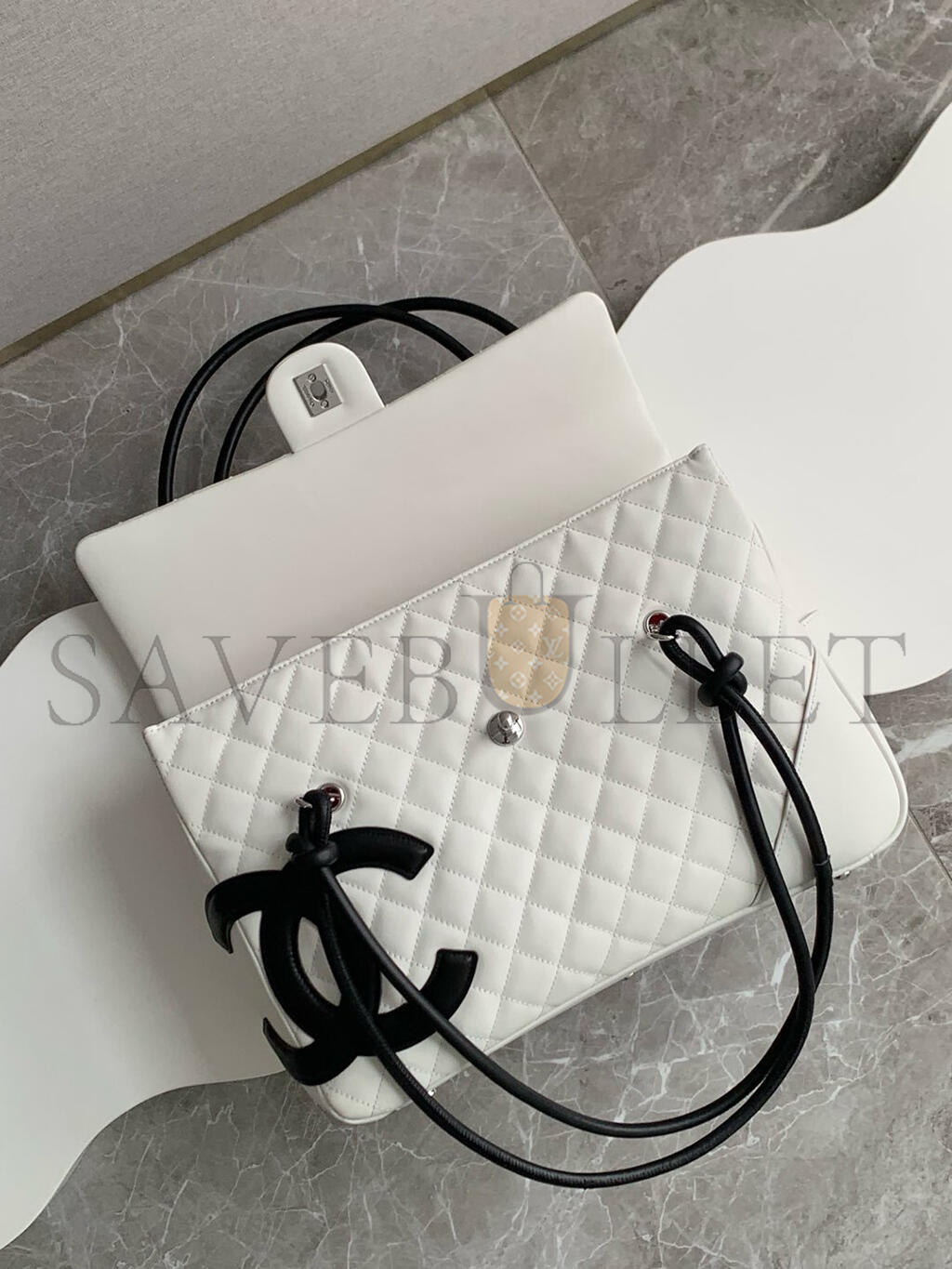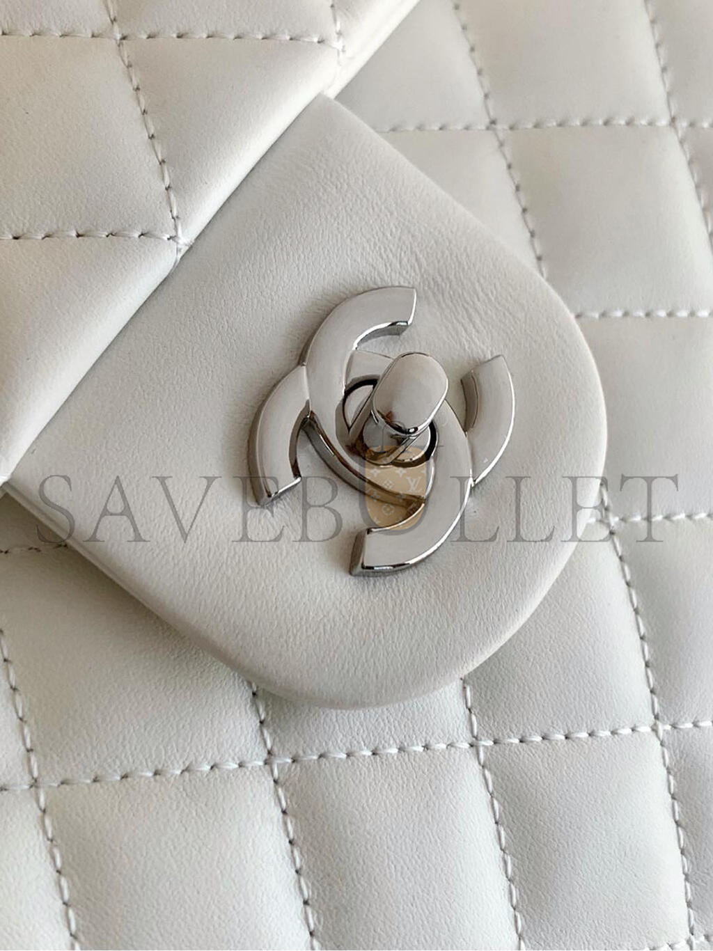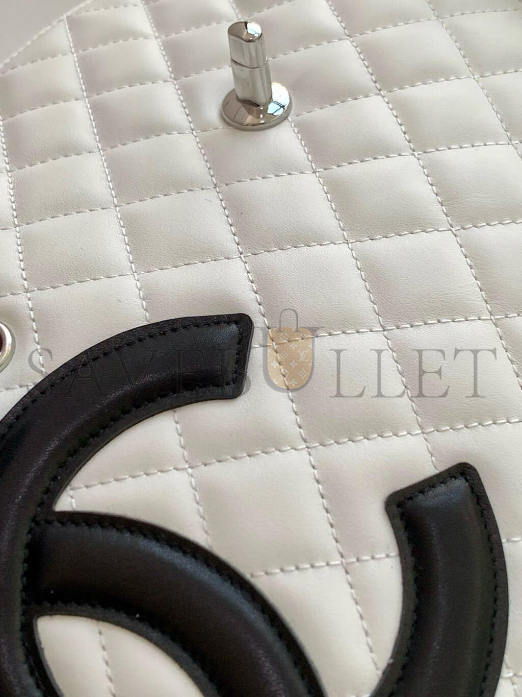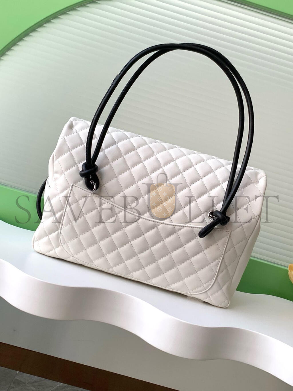 CHANEL CALFSKIN QUILTED LARGE CAMBON FLAP WHITE BLACK (33*24*11cm)