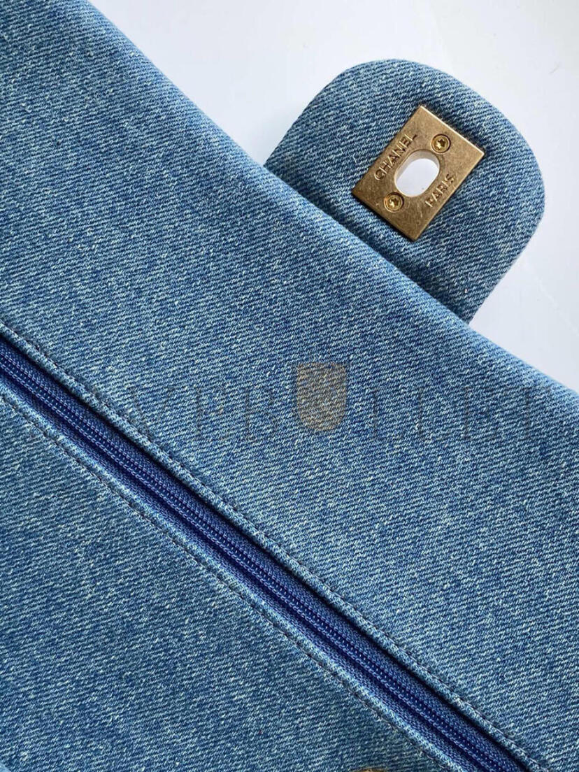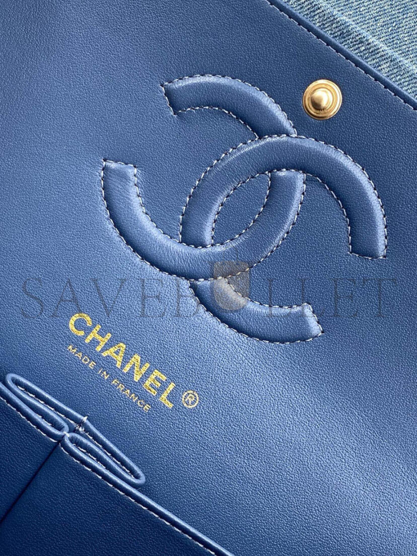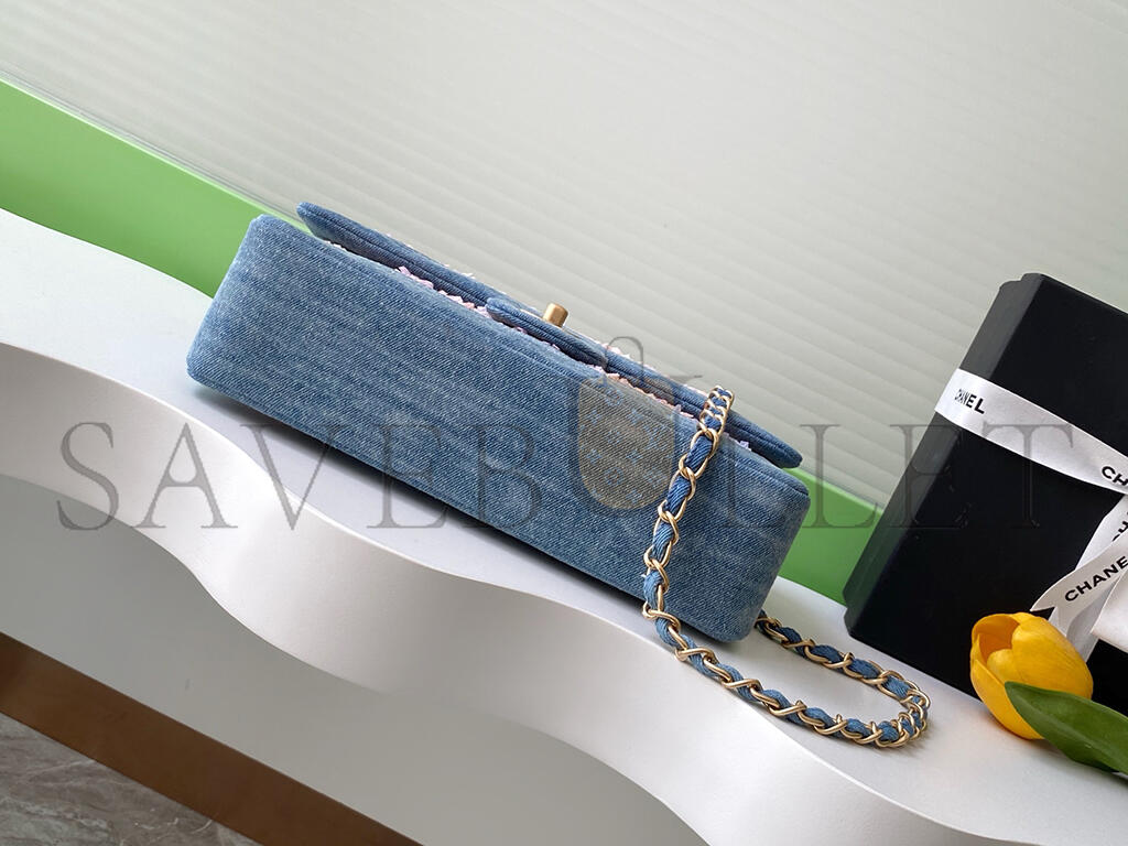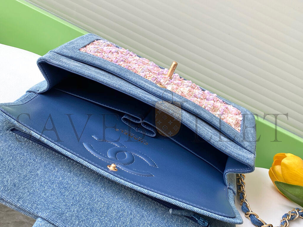 CHANEL PINK DENIM CLASSIC DOUBLE FLAP MEDIUM AS3767 (25*16*7cm)