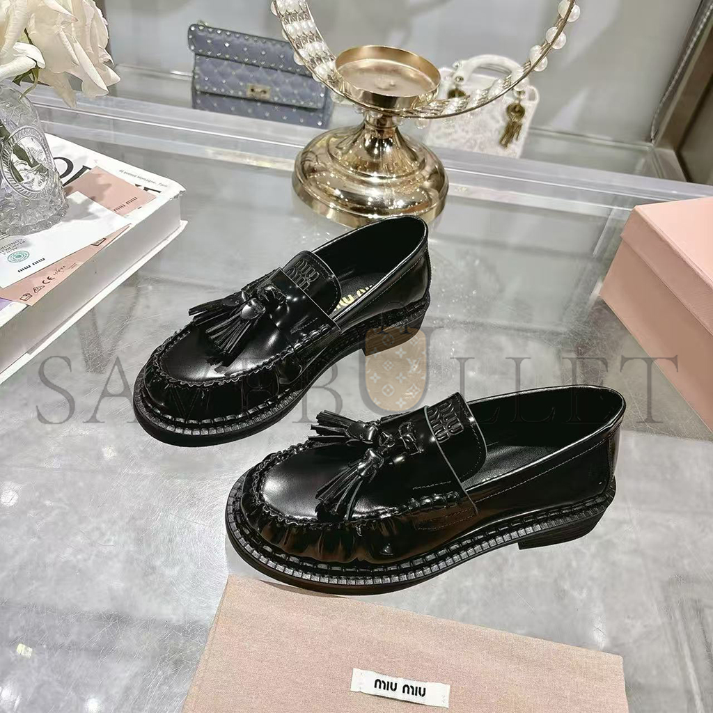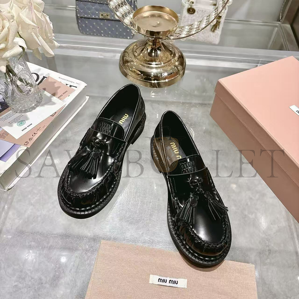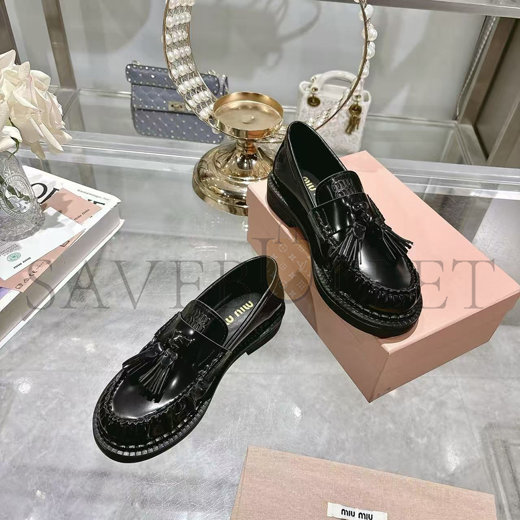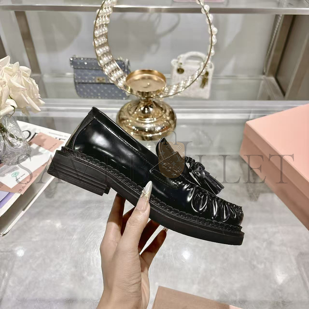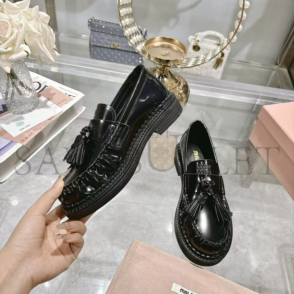 MIU MIU TASSEL LOAFERS IN POLISHED LEATHER 5D497E