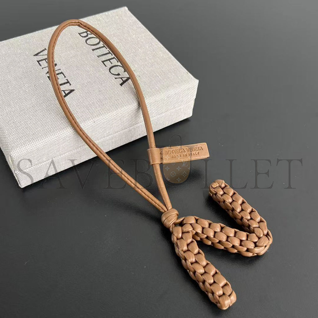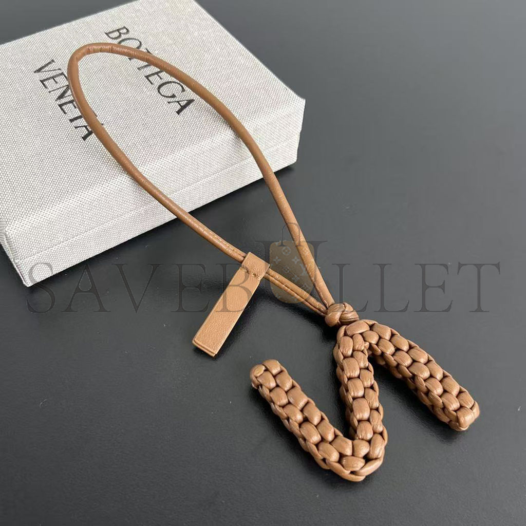 Charm realised in Intreccio nappa leather with letter "N" shape, featuring a leather lanyard.