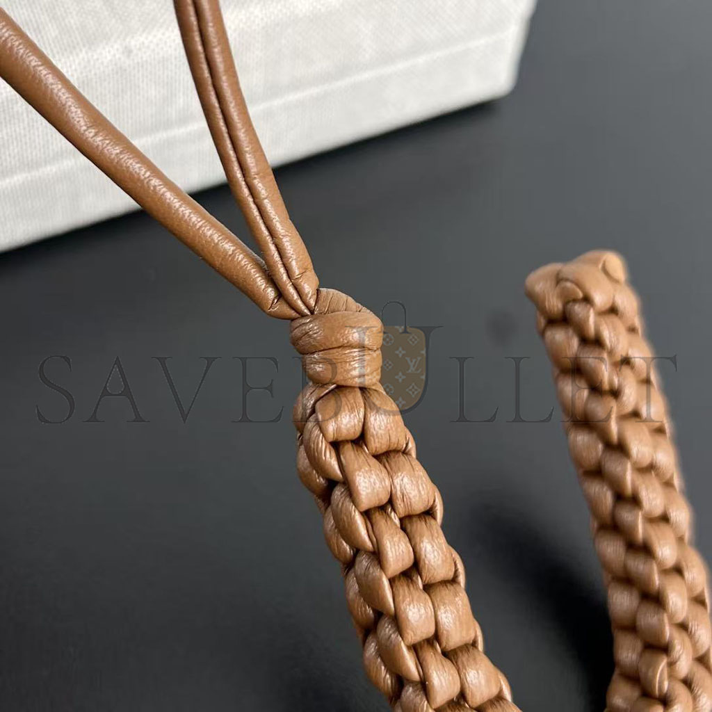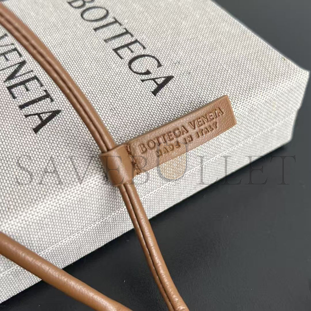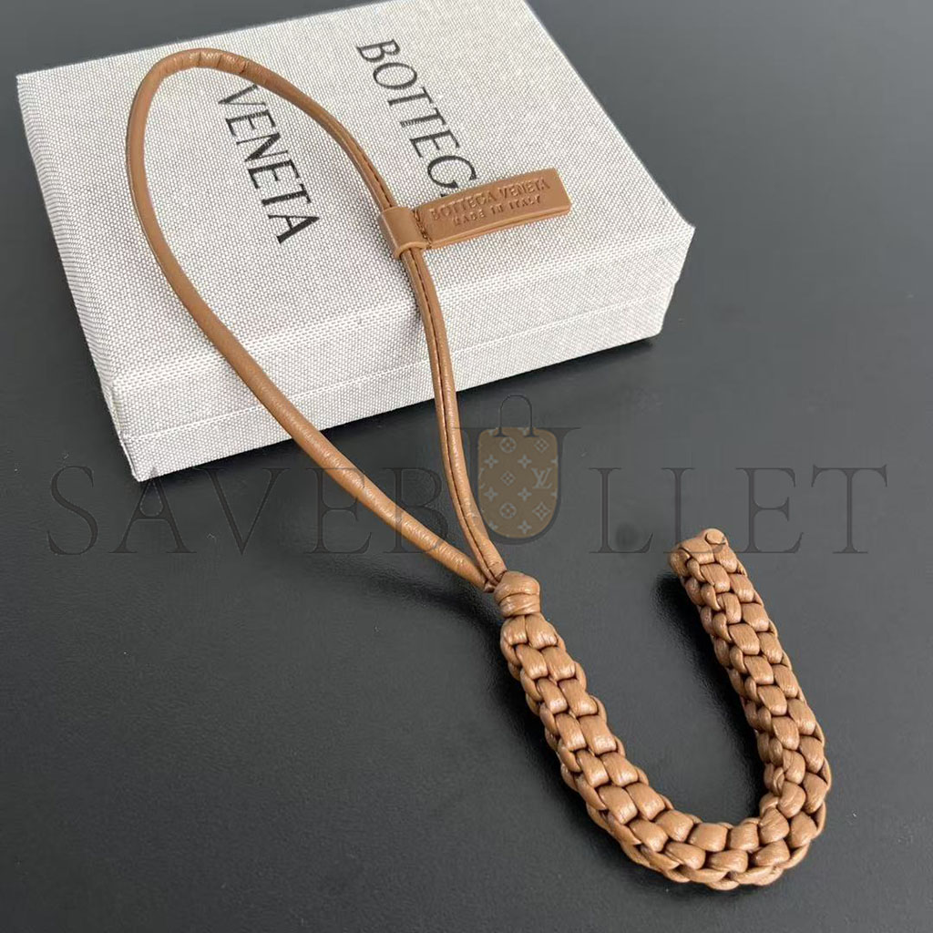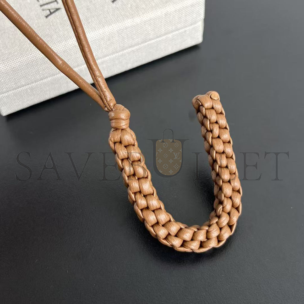 Charm realised in Intreccio nappa leather with letter U shape, featuring a leather lanyard.