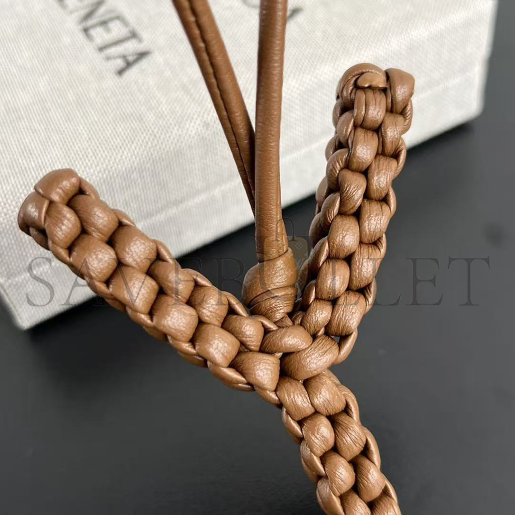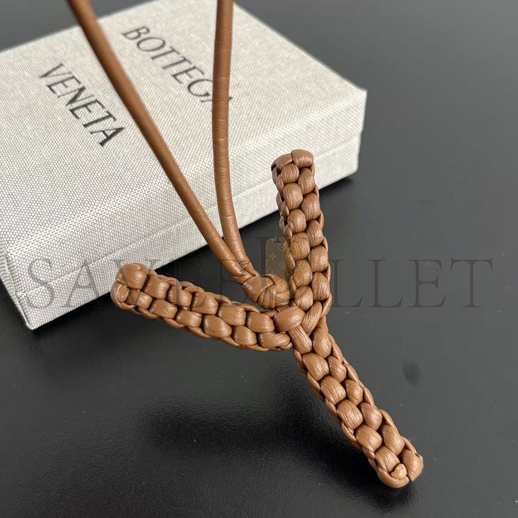 Charm realised in Intreccio nappa leather with letter "Y" shape, featuring a leather lanyard.
