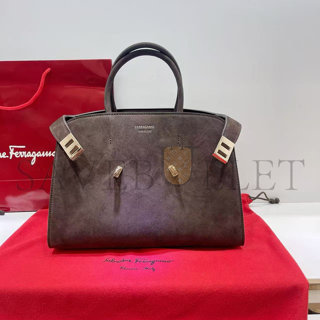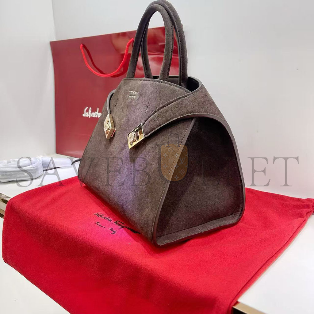 FERRAGAMO SUEDE HUG HANDBAG (32*24*17cm)