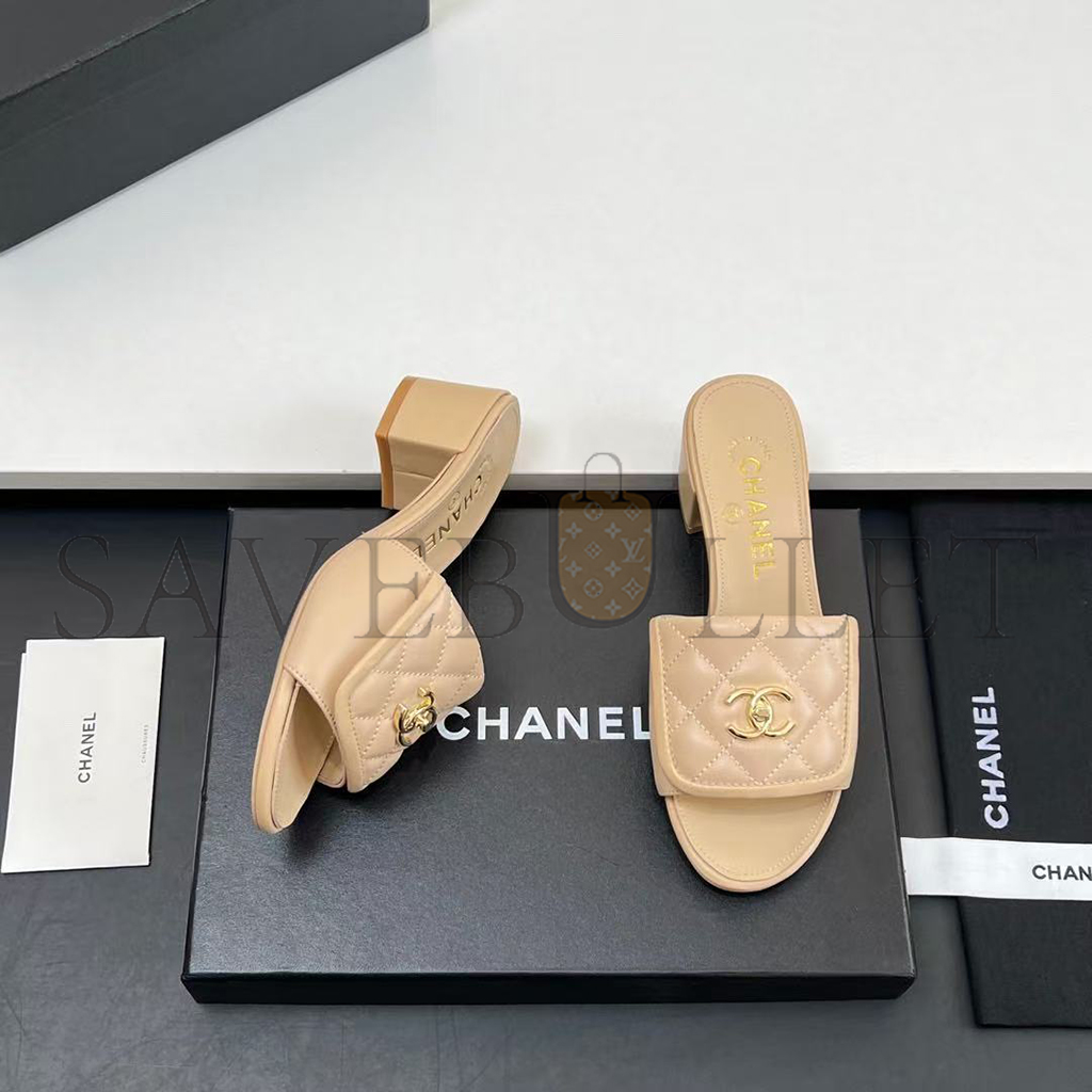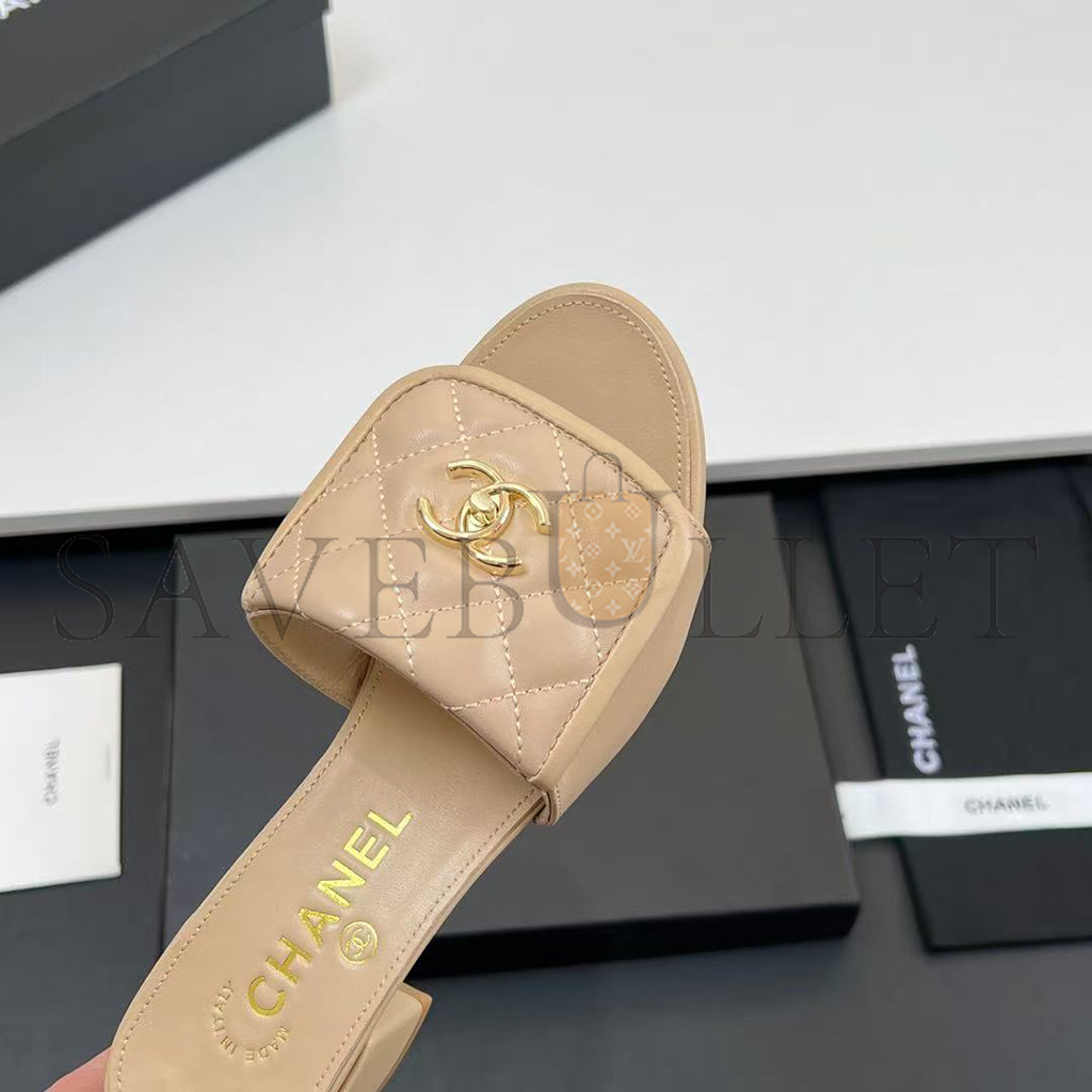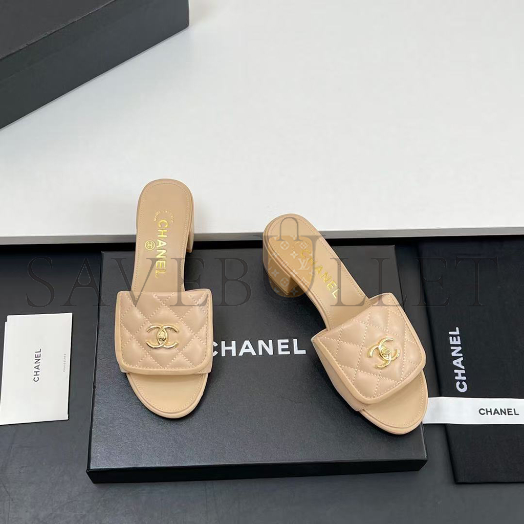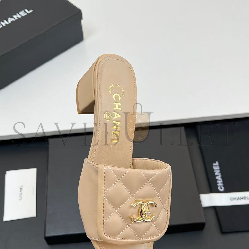CHANEL LAMBSKIN QUILTED TURNLOCK SLIPPERS MULES