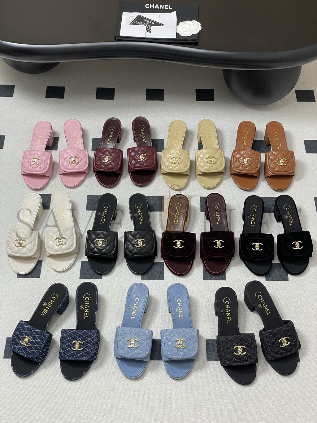 CHANEL LAMBSKIN QUILTED TURNLOCK SLIPPERS MULES