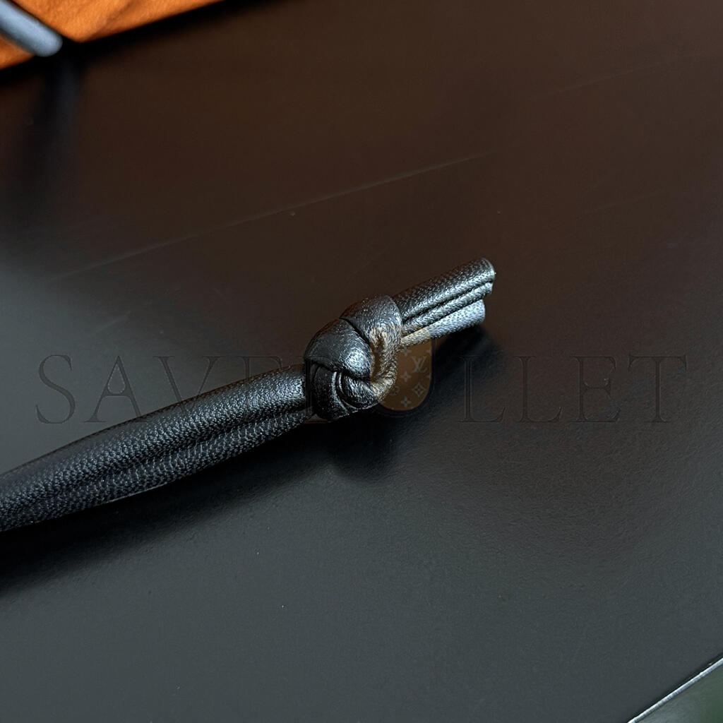 Charm realised in Intreccio nappa leather with John John shape, featuring a leather lanyard.