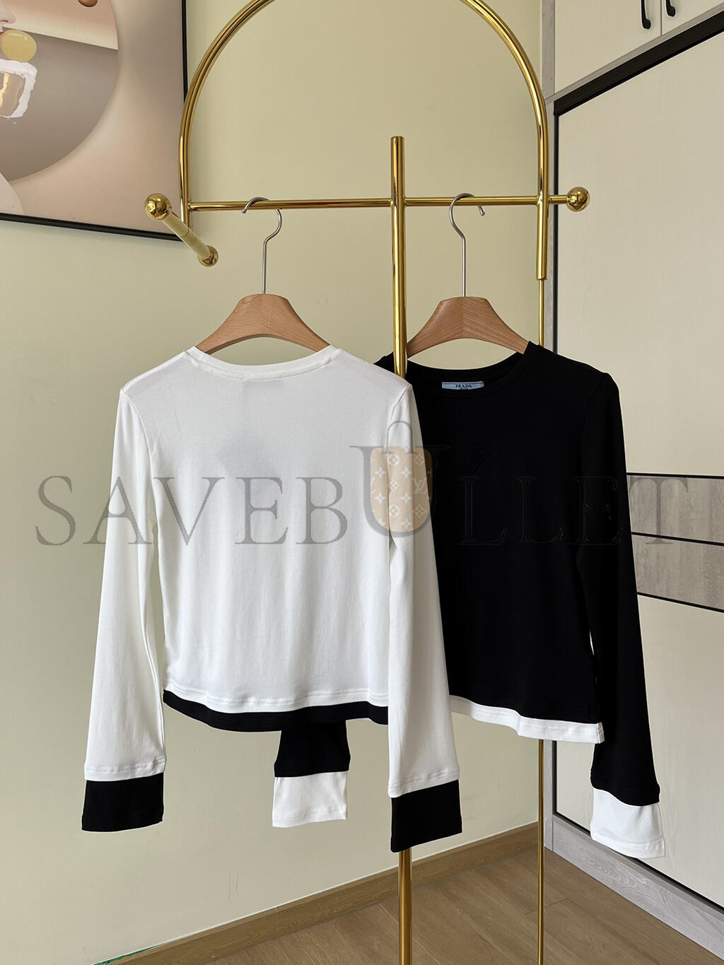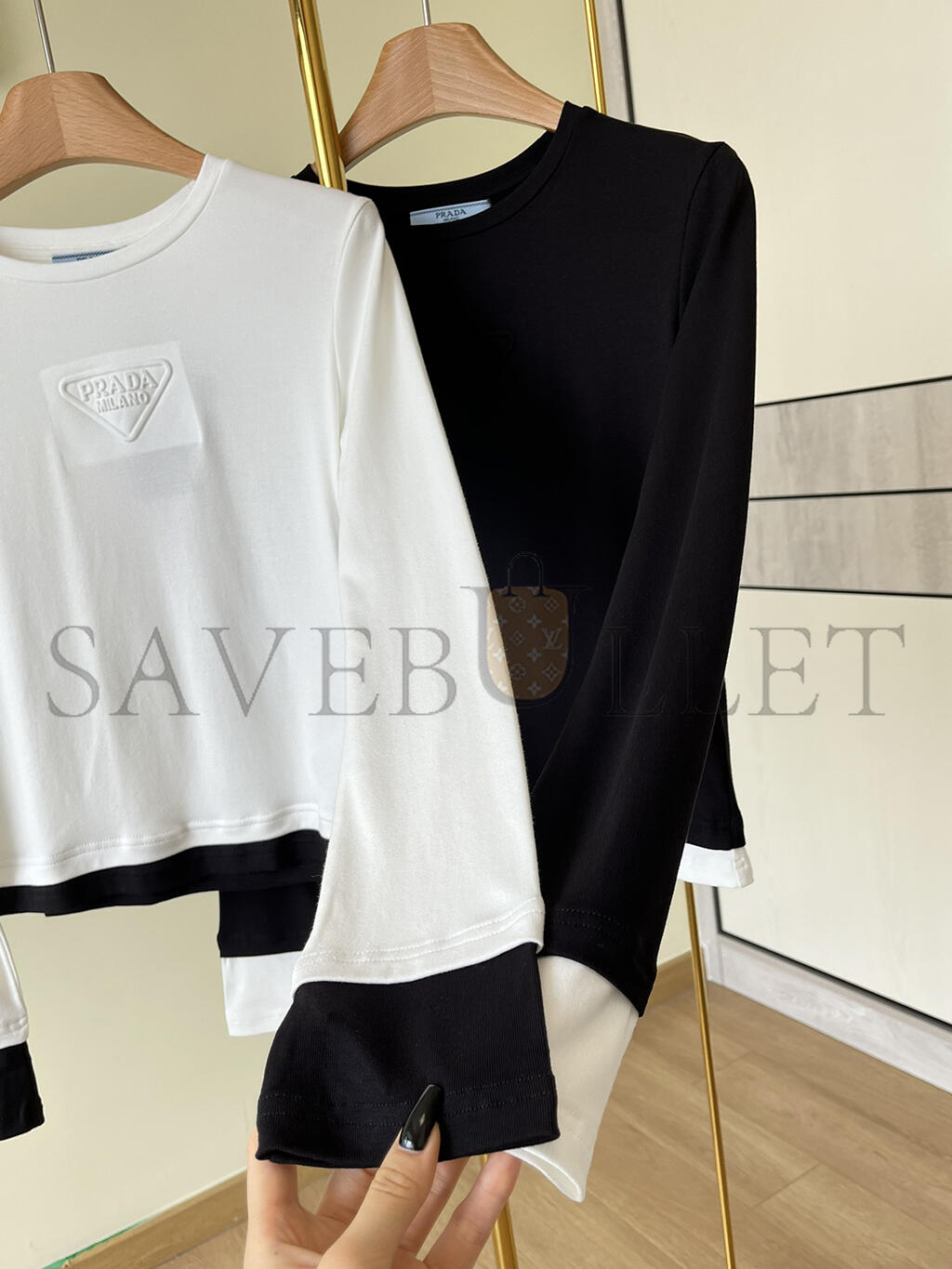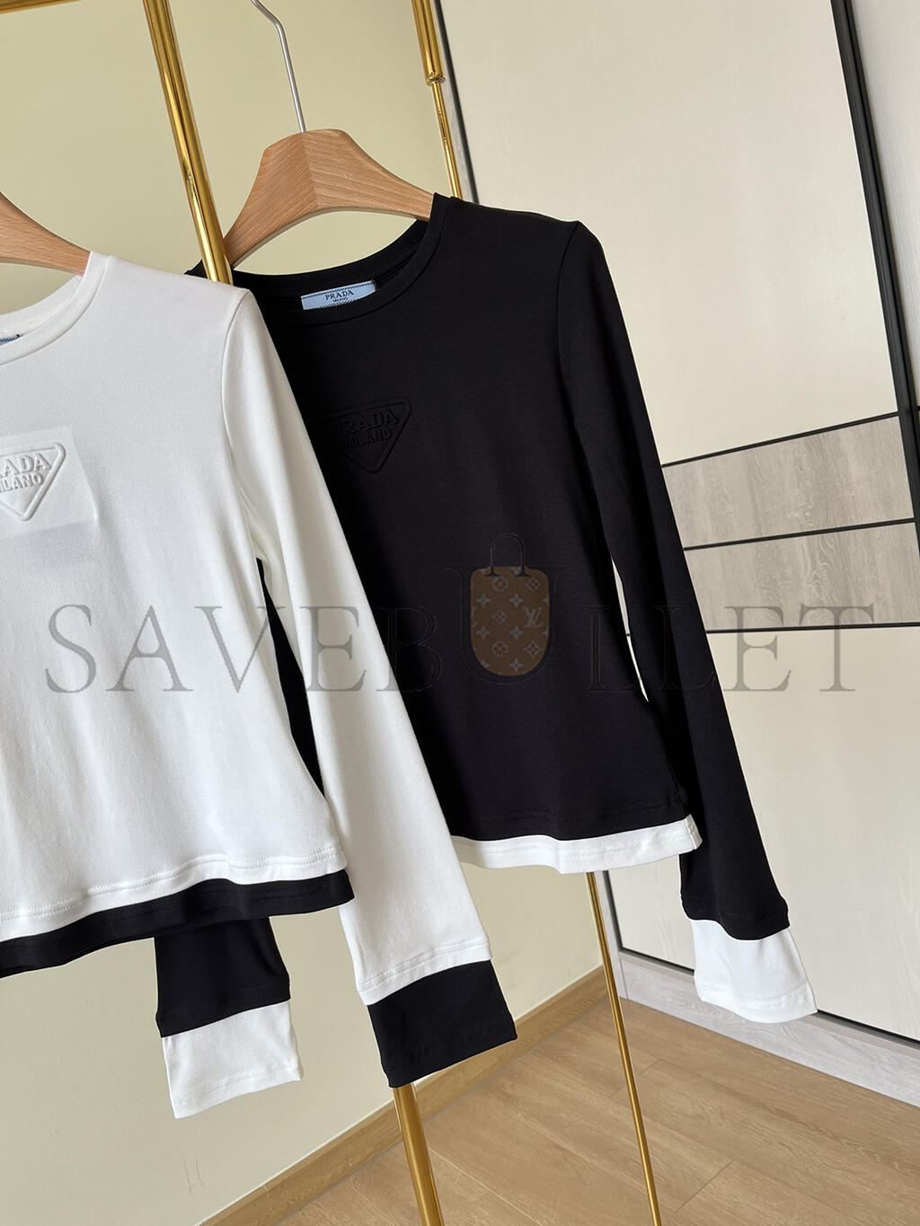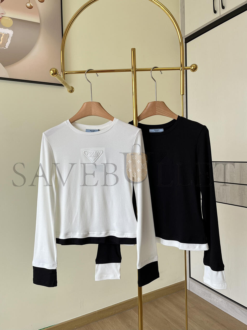 PRADA FAUX TWO-PIECE TRIANGULAR LETTER LONG-SLEEVED SHIRT